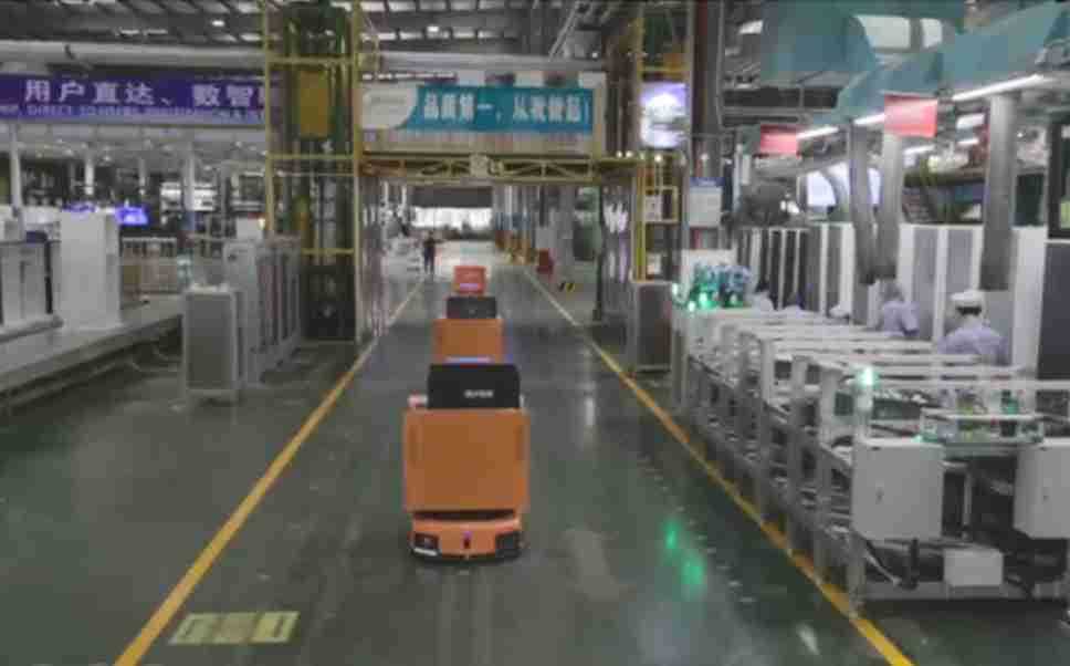 为车载冰箱物流配送打造的智能解决方案,,,,包含产中物流通过潜伏举升AMR搬运至线边,,,产后成品物流智能仓储,,,流程包含产中物流智能齐套入库,,,,线边安灯叫料AMR智能配送至线边,,成品入库、、、、出库,,通过无人堆高车机器人,,,智能仓储管理替代人工作业管理,,实现更高存储、、更高效率、、、更具柔性化的解决方案。。
